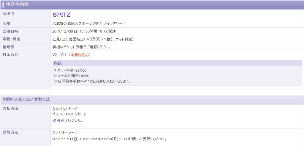 あせらずミスのないように進んだら無事に12月8日の武蔵の森チケット1枚をゲットできました